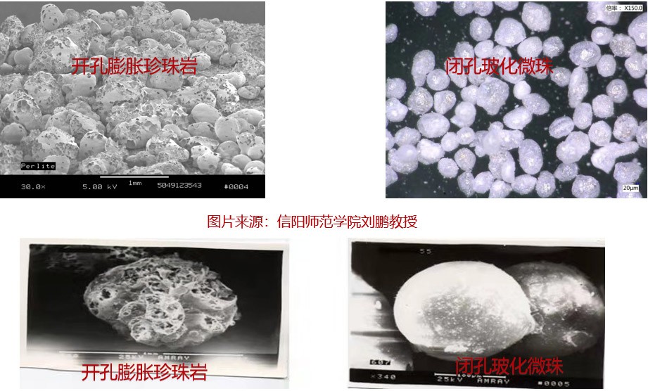 開孔珍珠巖和?;⒅榈奈⒂^結(jié)構(gòu)對(duì)比